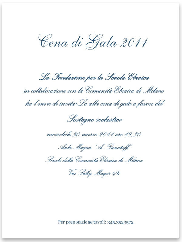 Tra gli oltre 400 invitati molti giovani, ex alunni che hanno iscritto i figli alla Scuola della Comunità, intenzionati a partecipare al futuro della Scuola. Numerosi anche i vip, tra cui Letizia Moratti e l’architetto Daniel Libeskind, molto attivo a Milano con grandi progetti legati, ad esempio, a Expo 2015, che nei loro interventi hanno ribadito l’importante ruolo della Scuola nel tessuto sociale milanese. Presenti anche il Vice Direttore Generale di Confindustria Daniel Kraus, Daniel Buaron, Amministratore e Fondatore di First Atlantic R.E, la co-presidente di Sotheby’s Italia Claudia Dwek e altri imprenditori. La palestra della Scuola e l’Aula Magna “A. Benatoff” si sono trasformate in eleganti saloni. Nel corso della serata è stato ribadito anche l’impegno della Fondazione ad affiancare le famiglie in difficoltà, che scelgono la scuola pubblica per motivi economici.Tema centrale della serata il Progetto Sostegno che la Scuola realizza per affiancare gli studenti con difficoltà di apprendimento, aiutandoli a sviluppare le proprie potenzialità. Un approccio confermato dal commovente intervento di Ariela Shepps, mamma di un bimbo autistico, che ha trovato nella Scuola grande attenzione e competenza. Prima della bellissima performance artistica del gruppo musicale delle Goldene Pave, la parola è passata a Roger Abravanel, consulente del Ministro dell’istruzione Gelmini, che ha sottolineato come nel quadro preoccupante che offre la scuola italiana, le Scuole ebraiche dovrebbero impegnarsi a raggiungere un ruolo di assoluto vantaggio nell’ambito dell’eccellenza. Un obiettivo a portata di mano, come dimostrano i risultati dei test Invalsi applicati dalle scuole ebraiche italiane agli studenti della secondaria di primo grado su suggerimento di Abravanel e che hanno confermato l’alto livello di qualità di questi istituti.