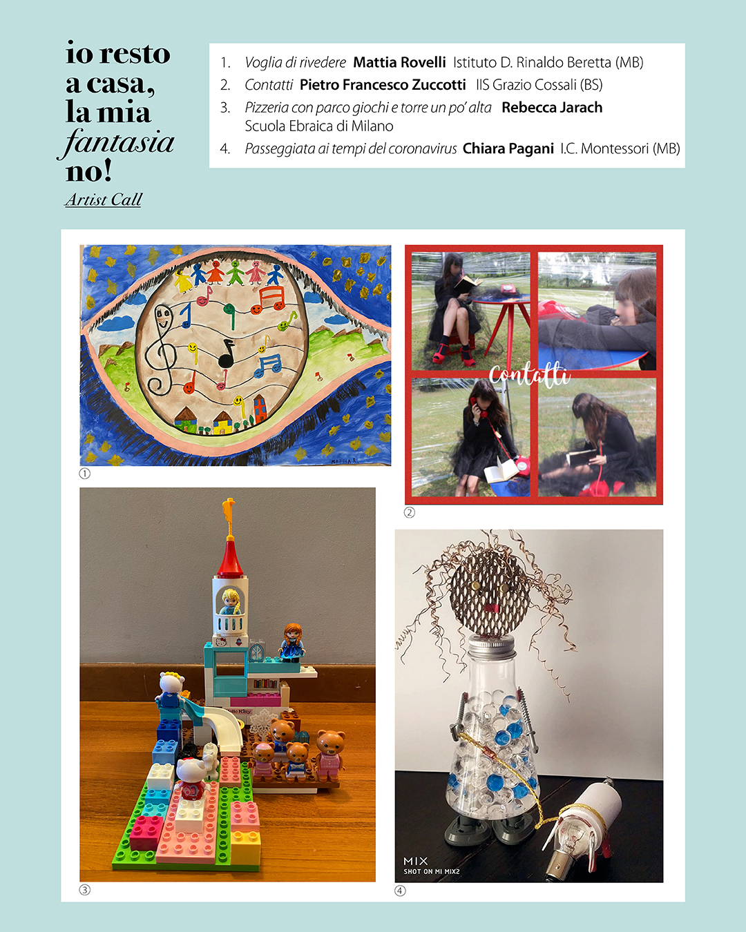 Promossa a maggio 2020 dalla Fondazione Scuola per tutti gli studenti della Lombardia, l'Artist Call “Io resto a casa, la mia fantasia no” ha dato un risultato straordinario: quello di documentare, attraverso gli occhi di una categoria sensibile come i ragazzi, la difficoltà legate alla pandemia, ma anche lanciare un messaggio di speranza.